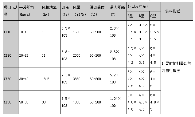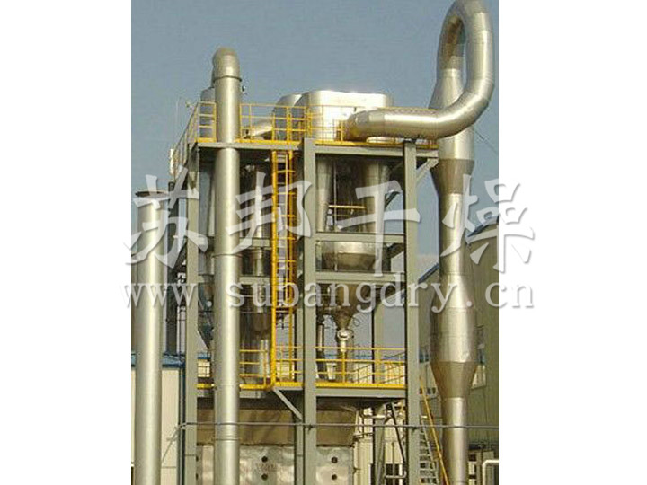 物料經(jīng)加料口均勻推進,高速受熱空氣將粉狀物料在管道內(nèi)迅速傳熱提升。干燥后的物料經(jīng)分離后連續(xù)出料,進、出料干燥時間一般為幾秒鐘。濕空氣經(jīng)引風(fēng)機排出。